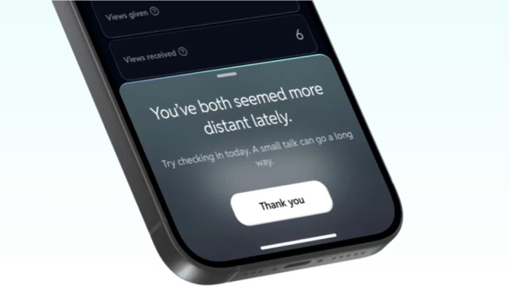 You’ll see trends in emotions, triggers, categories of feedback, and a relationship health score updated after each catch-up.