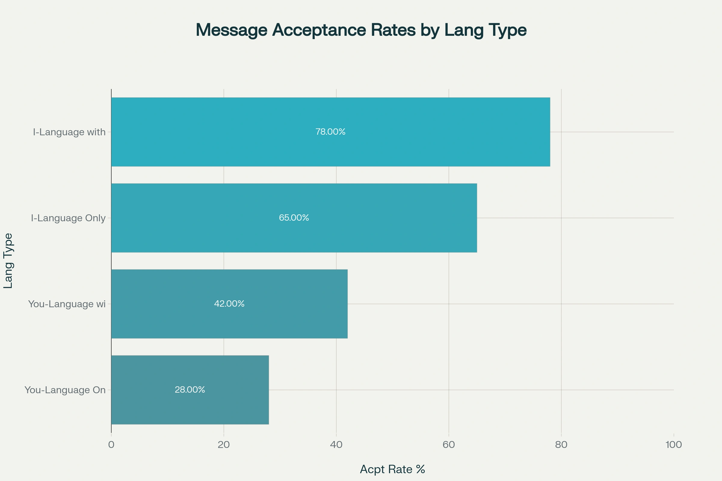 The research demonstrates that I-language with perspective is nearly 3 times more effective than you-language in text-based conflicts, highlighting the critical importance of word choice when non-verbal cues are absent.