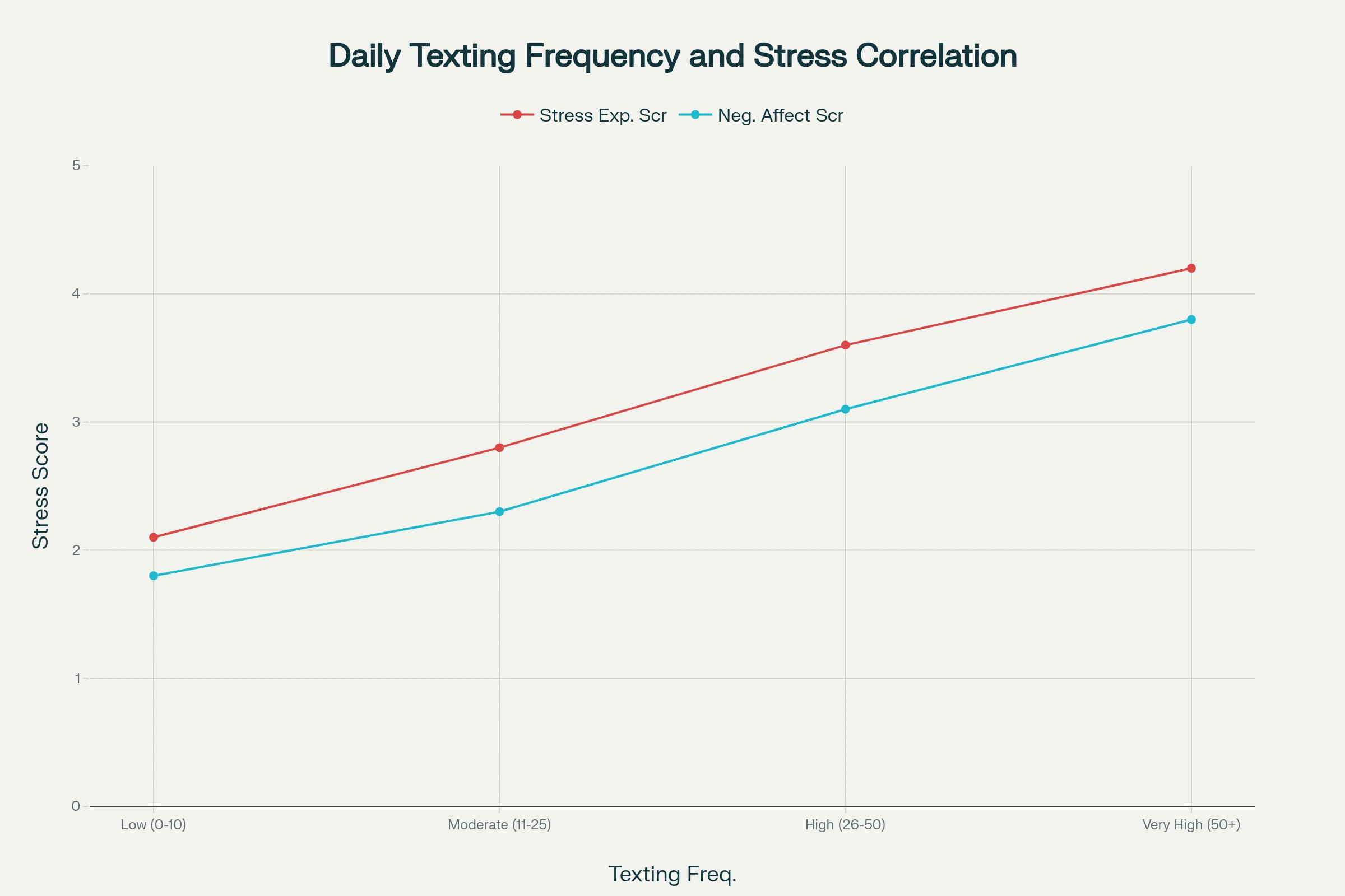 Stress Generation: High-frequency texting predicts increased next-day stress, creating destructive feedback loops.