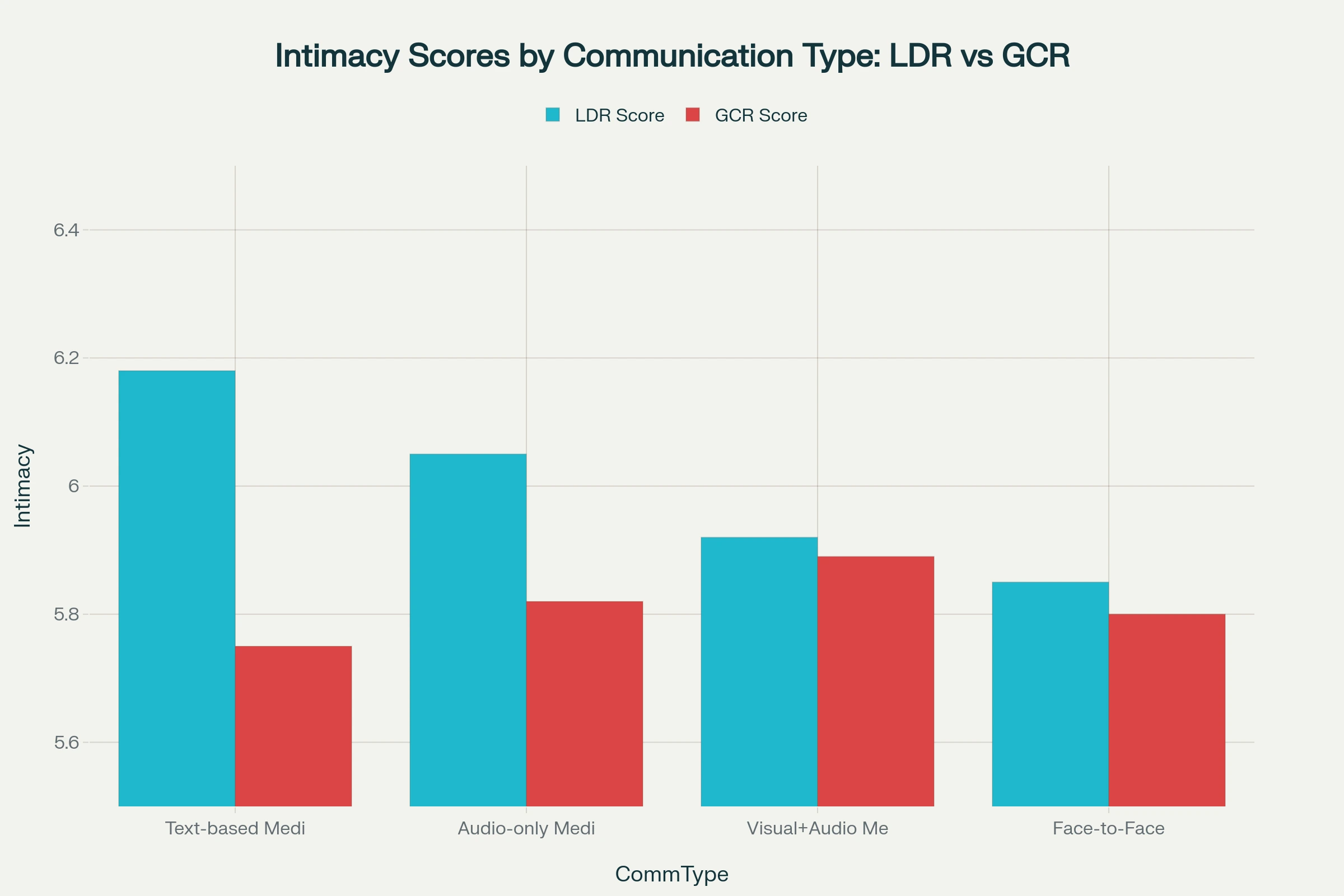 Face-to-face: LDR intimacy = 5.85 vs GCR intimacy = 5.80