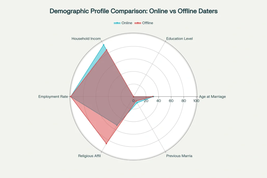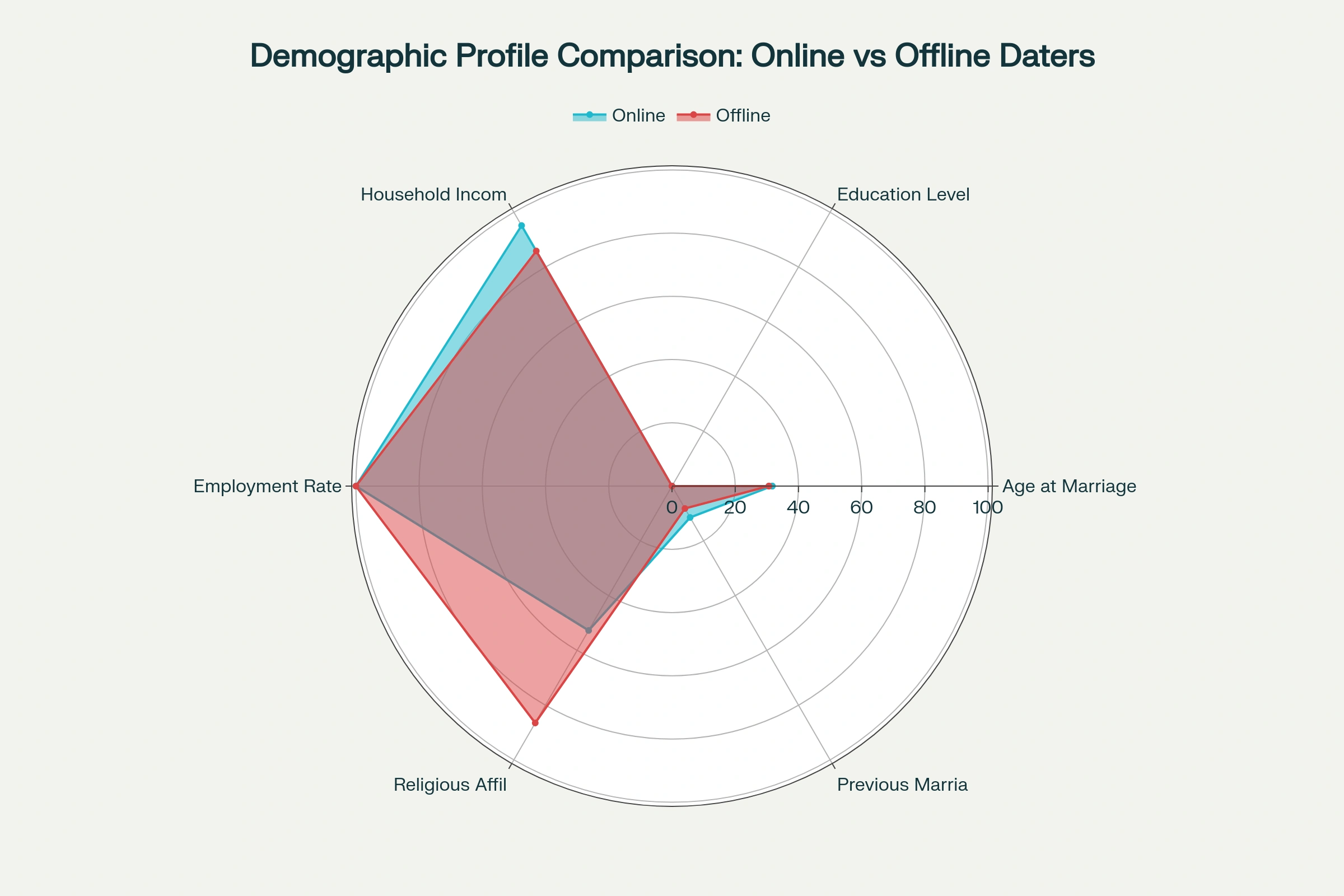 Comprehensive demographic analysis reveals that online and offline daters represent systematically different populations, complicating simple venue comparisons.